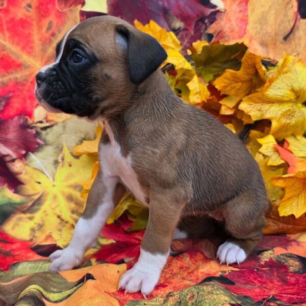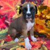 Hi, I’m Konnie! I’m a 6-week-old female Boxer with a beautiful flashy fawn coat, born on October 11, which makes me a Libra sign. I’ll be ready to go home to my forever family after December 6, once I’m grown enough to leave my litter. When I reach my adult size, I should weigh between 40–75 lbs. I’m AKC registered. Some might even say I’m a tennis ball connoisseur! I like anything that gets my tail wagging. I can play for hours, then curl up for a good ‘ol nap.